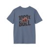 This lightweight cotton tee carries quiet confidence. A bold bull graphic anchors the back with a smaller chest mark, creating a low-key, athletic look that reads as both vintage and modern. The fabric feels soft and smooth against the skin; the crew neckline and classic fit keep the silhouette clean so the design takes center stage. Wear it on long training days, street runs, or layered under a jacket for evenings out — it moves with you and washes well without losing shape.