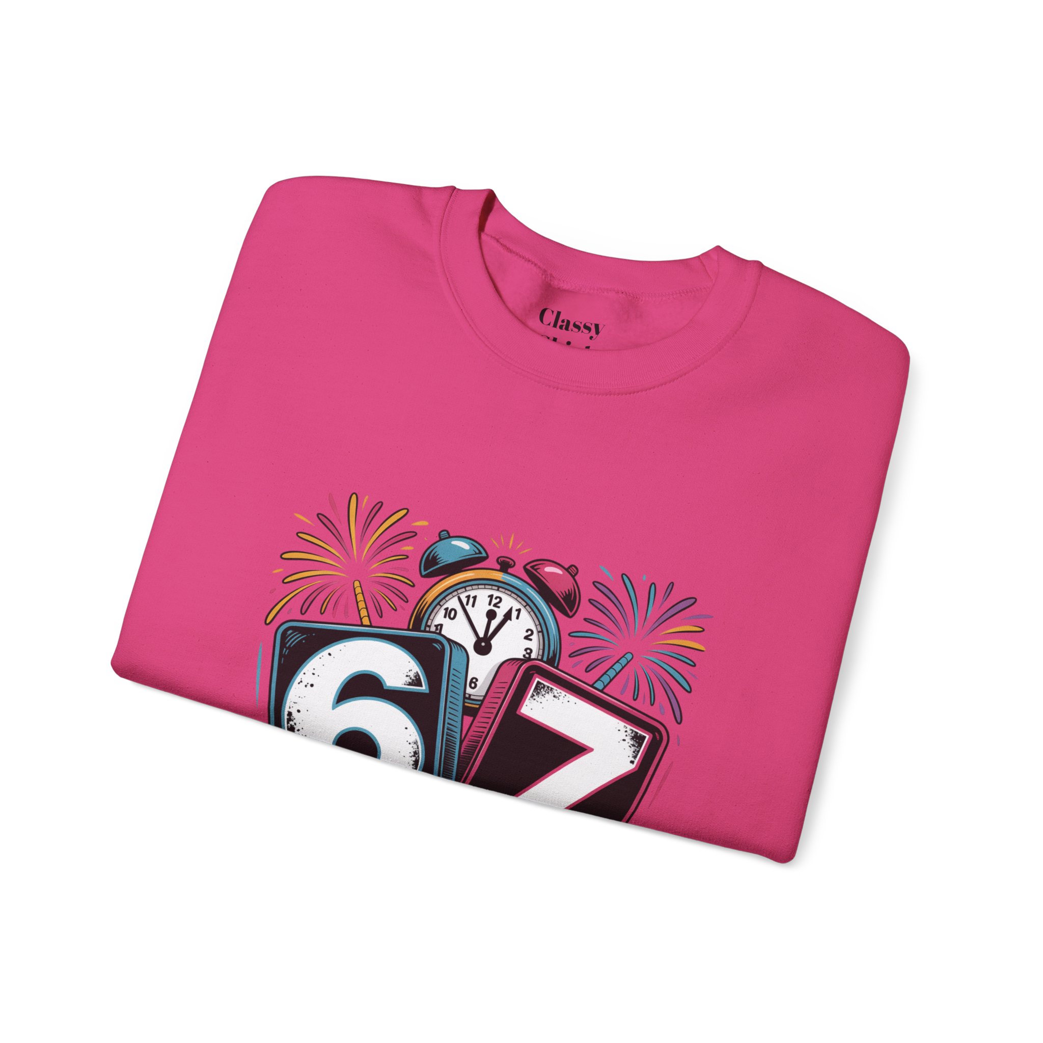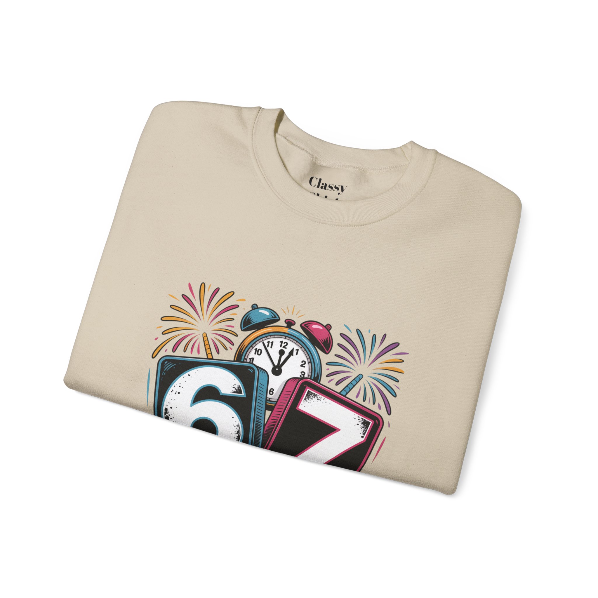 A clean, text-forward crewneck that captures the New Year Countdown mood with wry optimism. The front artwork features bold flip-card numbers, a retro alarm clock and subtle fireworks, pairing restrained festive colors with a modern sans-serif layout — a wearable nod to 2026 goals and new year humor that reads as upbeat and self-aware. Lightweight enough for party layering yet substantial for late-night countdowns, it fits into seasonal wardrobes for December–January celebrations or low-key goal-setting moments.