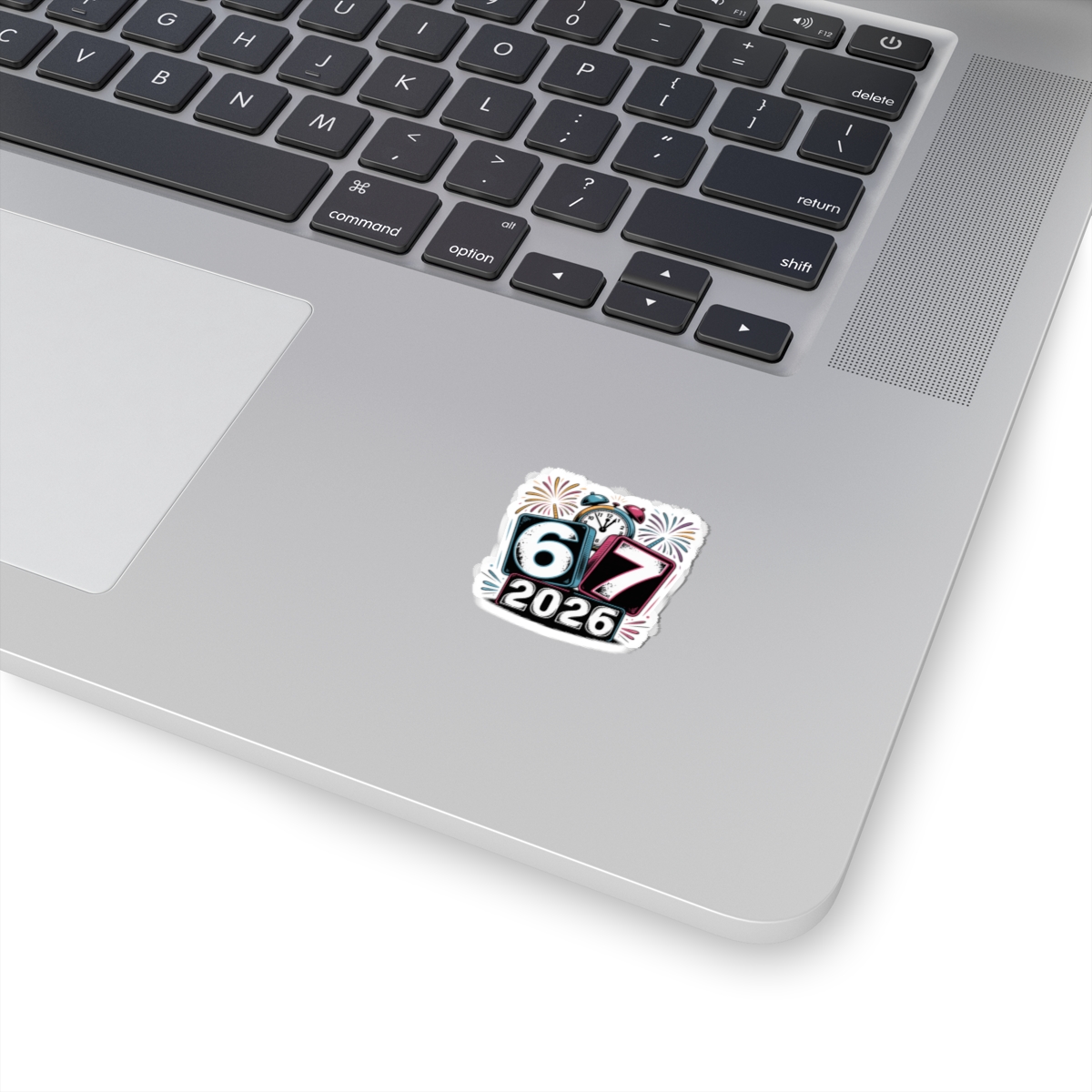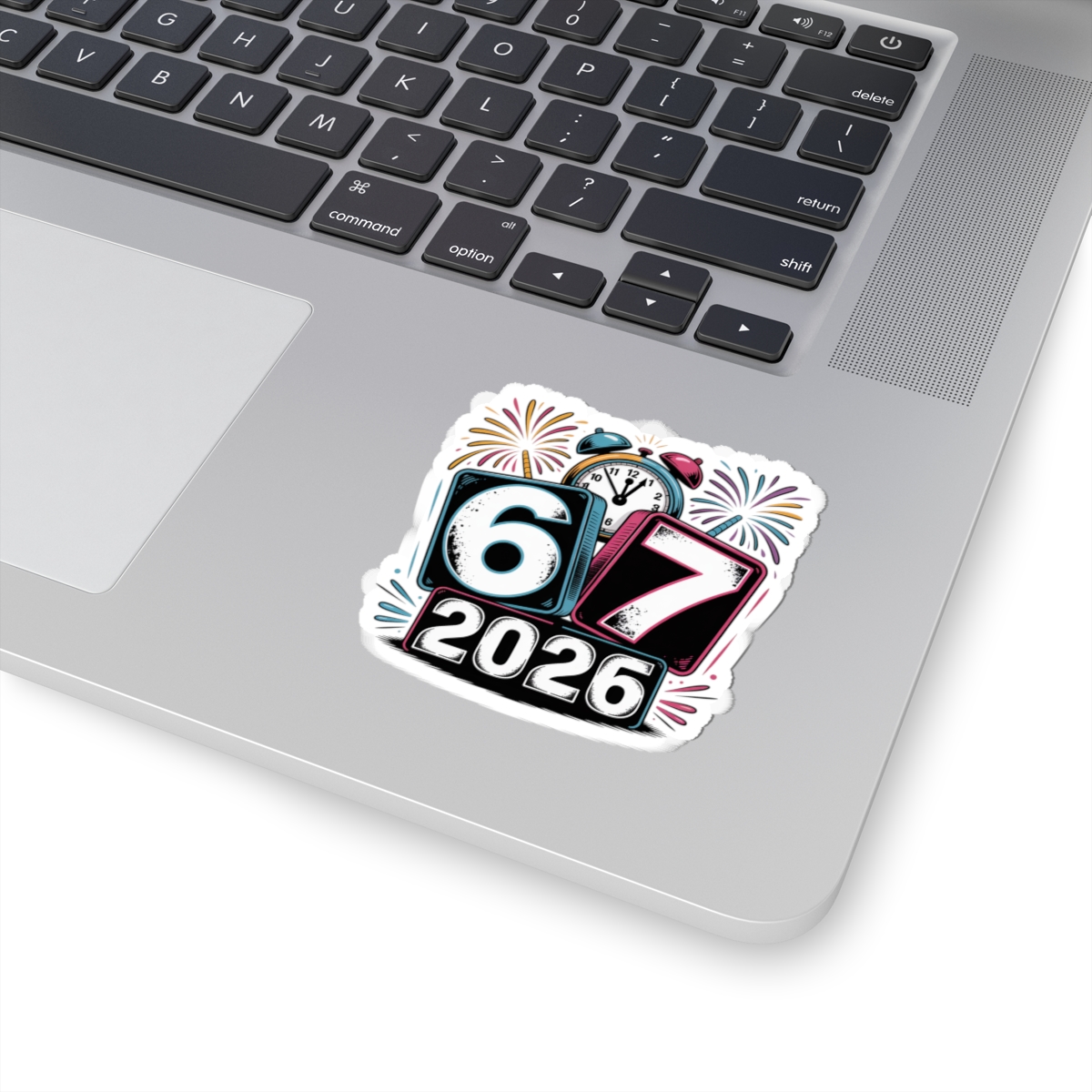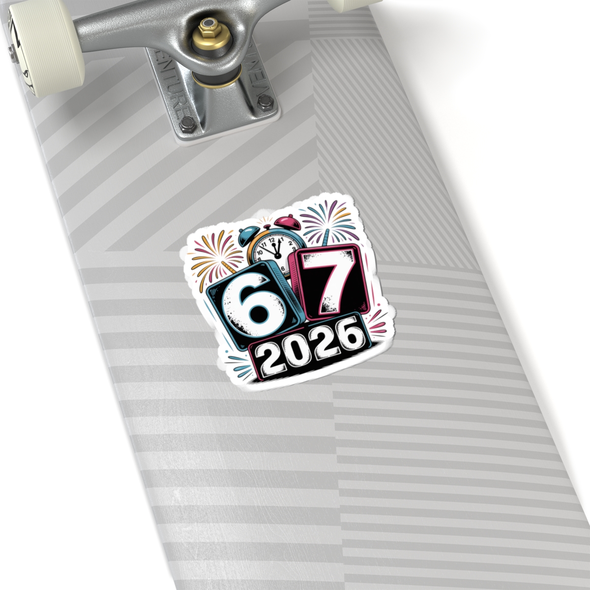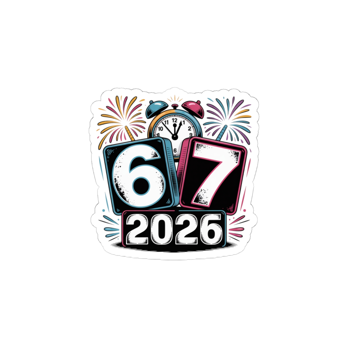 A crisp, text-forward kiss-cut sticker that balances wry countdown humor with hopeful energy for 2026. The design layers bold numeric tiles (“6” and “7”) over a 2026 slab with a ringing alarm clock and subtle fireworks—clean sans-serif numbers, restrained modern palette, and a compact layout that reads well at small sizes. It fits the New Year Countdown trend by mixing playful skepticism and forward-looking optimism for end-of-year planners, journals, and party accessories.