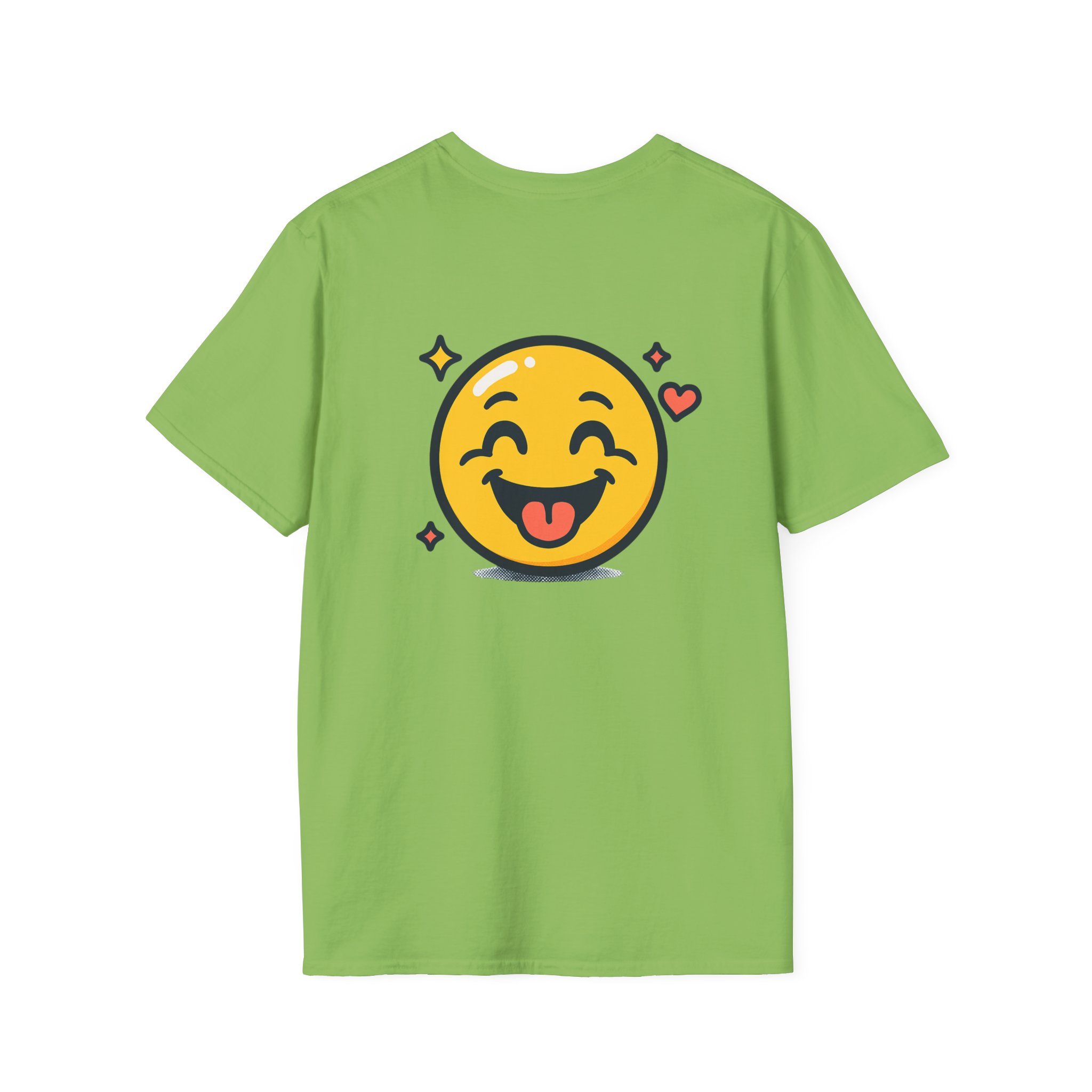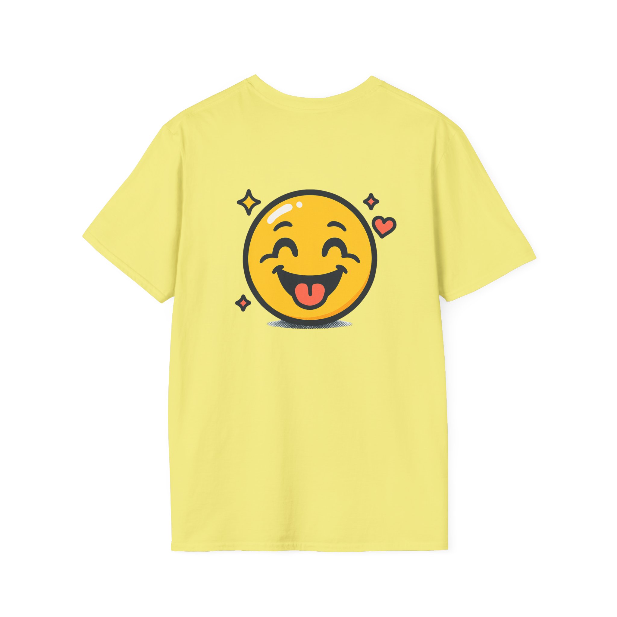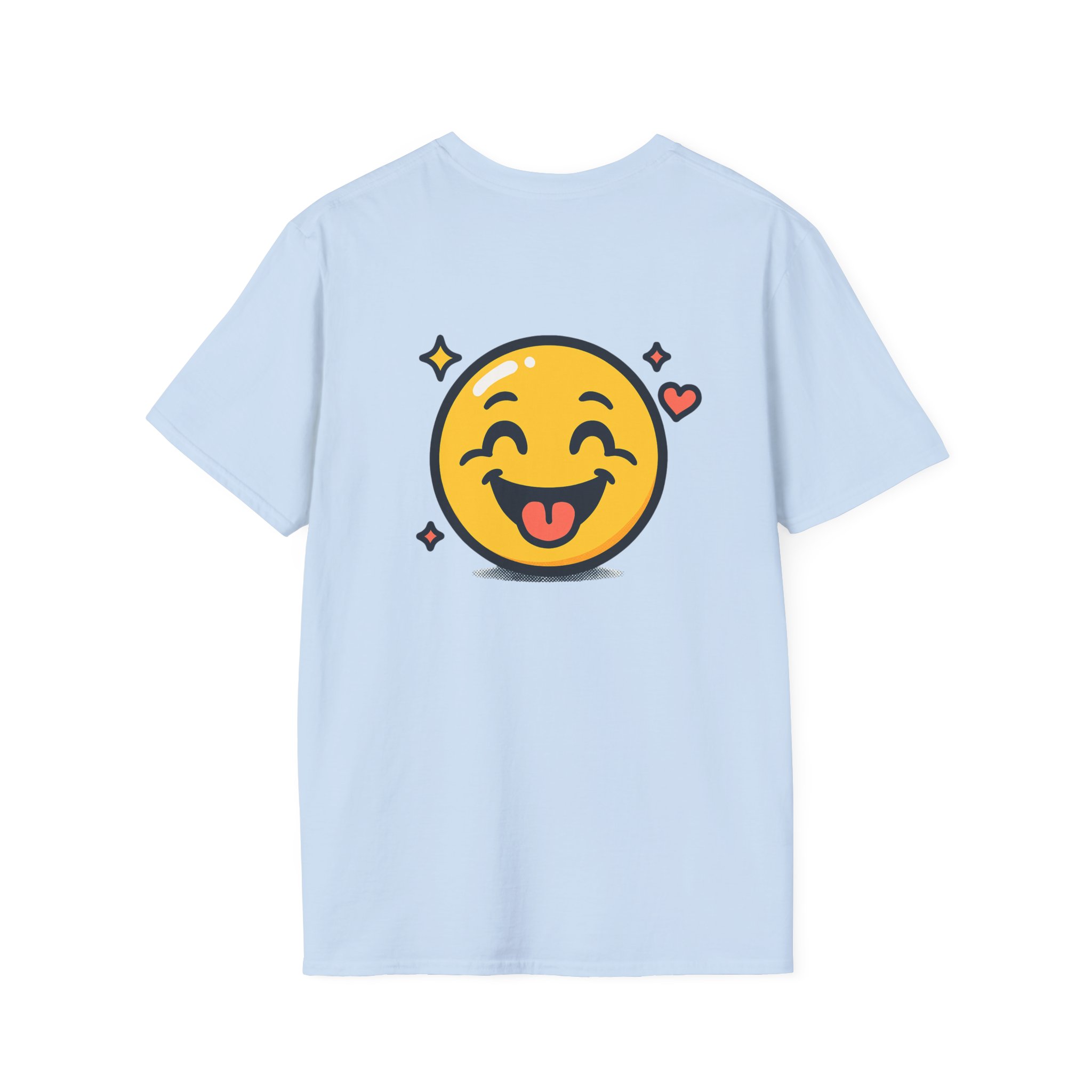 Lightweight, soft, and built for everyday wear — this crew-neck tee brings a splash of playful charm to a wardrobe that values comfort and clear expression. The breathable ring-spun cotton feels smooth against the skin, while a clean tubular knit and shoulder tape keep the shape durable through repeated washes. The back features a bright, cheerful emoji-style graphic that reads like a small, joyful moment you can wear: a quick smile between errands, a confident nod at a casual meet-up, or a wink on a laid-back weekend. Tailored for adults who prefer uncomplicated style with a friendly, upbeat vibe, this shirt layers easily under a jacket or stands alone with jeans and sneakers. Safety- and quality-tested fabrics and a tear-away label complete a fuss-free wearing experience.
