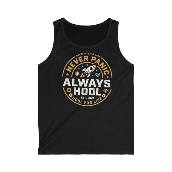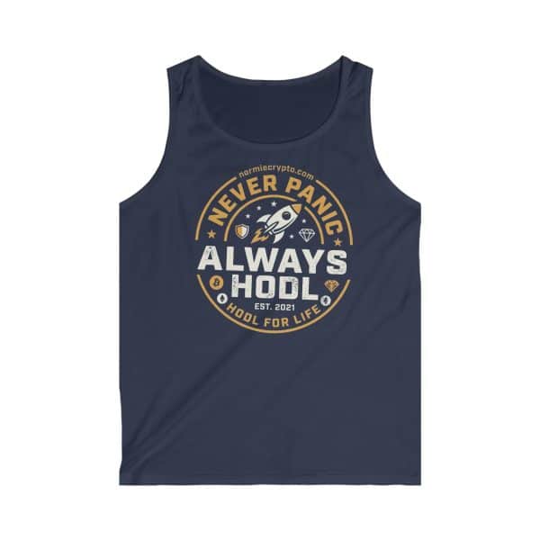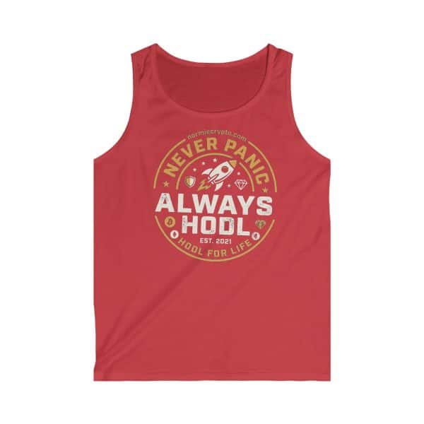 Be the first to review “HODL Crypto Tank Top — “Never Panic Always HODL” Rocket Design”
