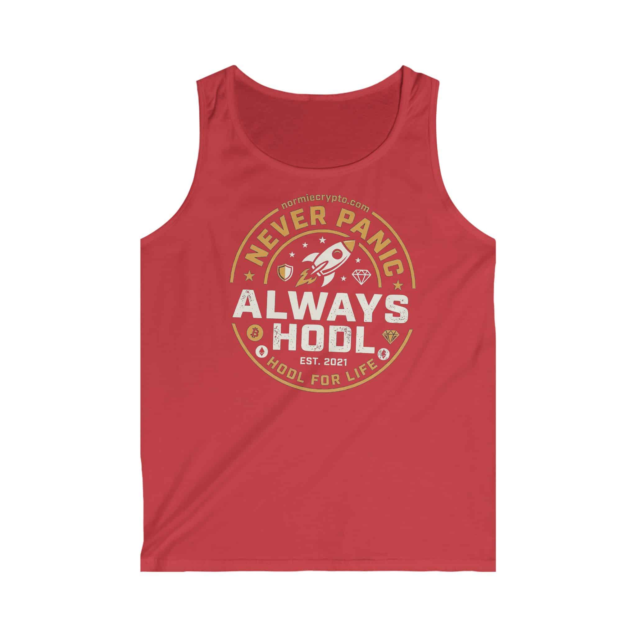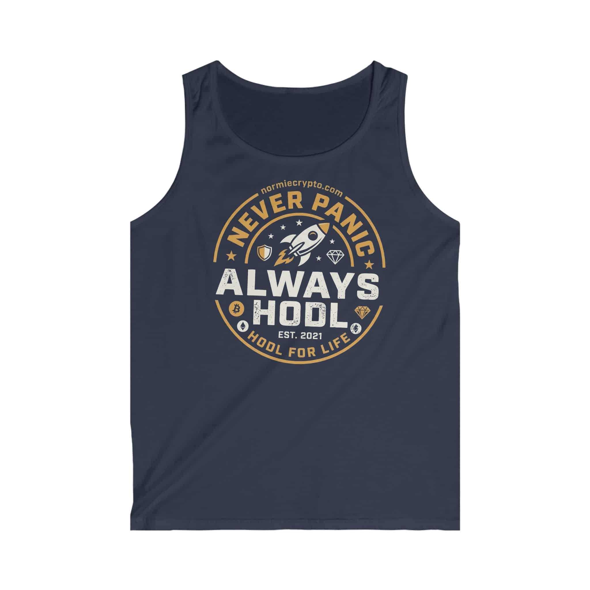 HODL Crypto Tank Top — “Never Panic Always HODL” Rocket Design