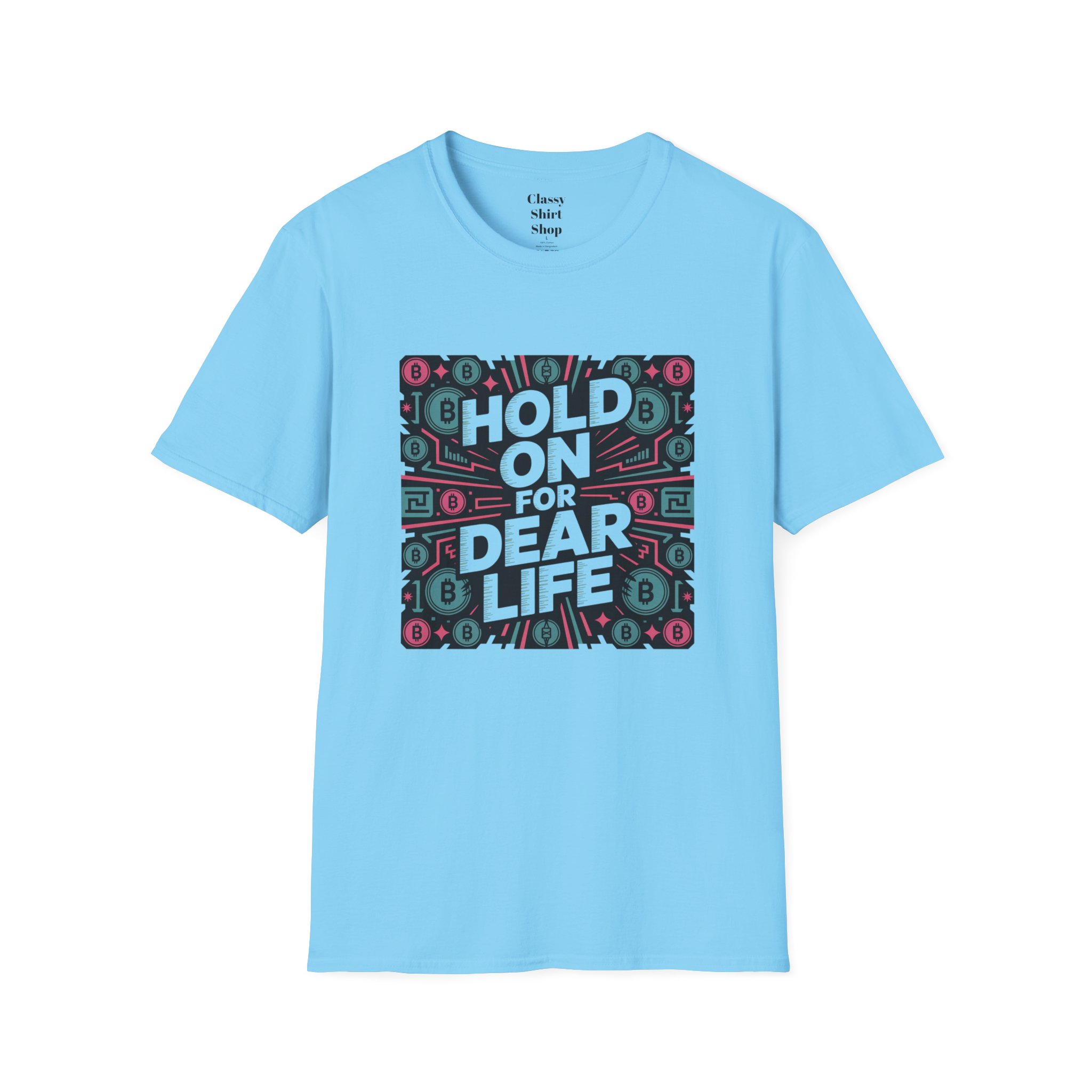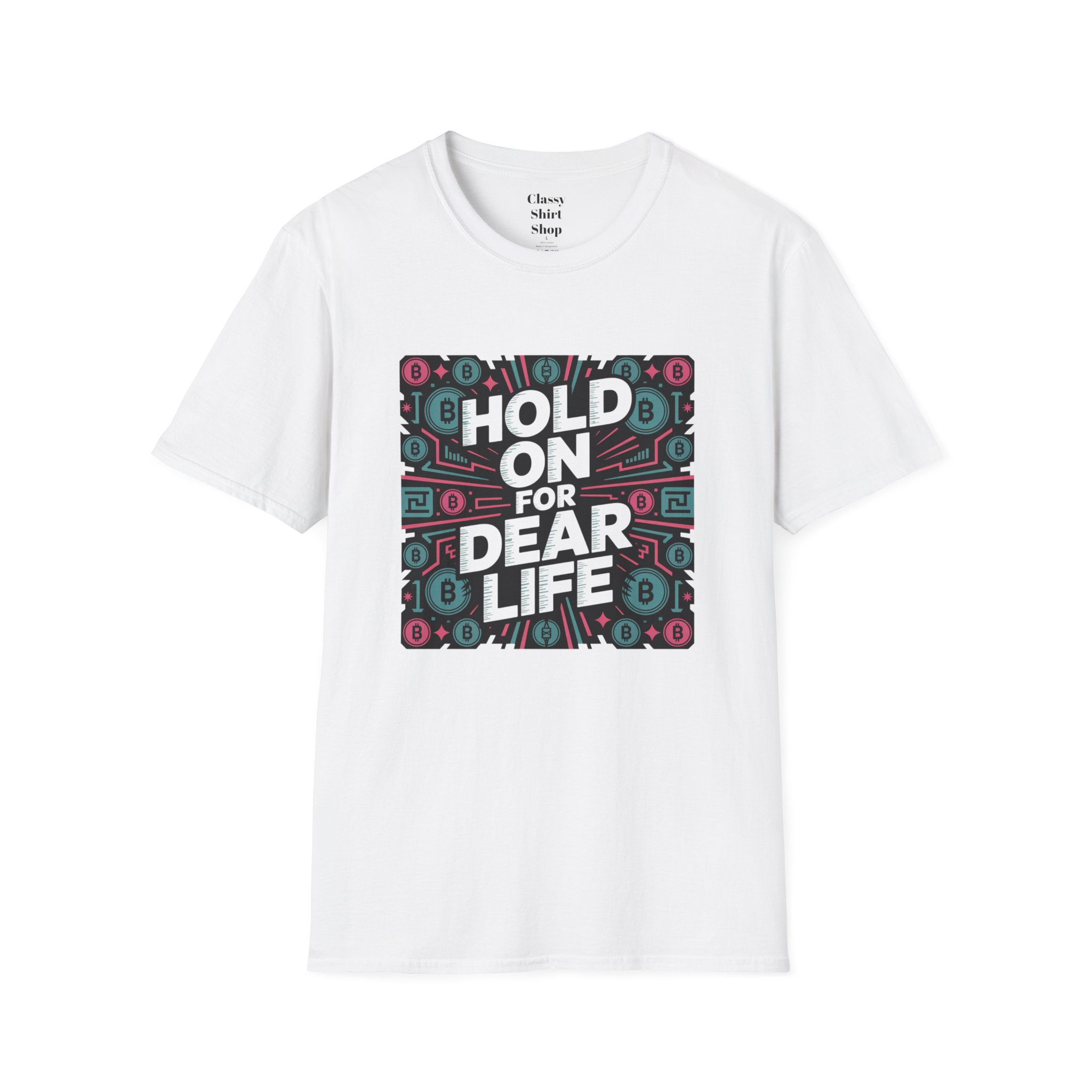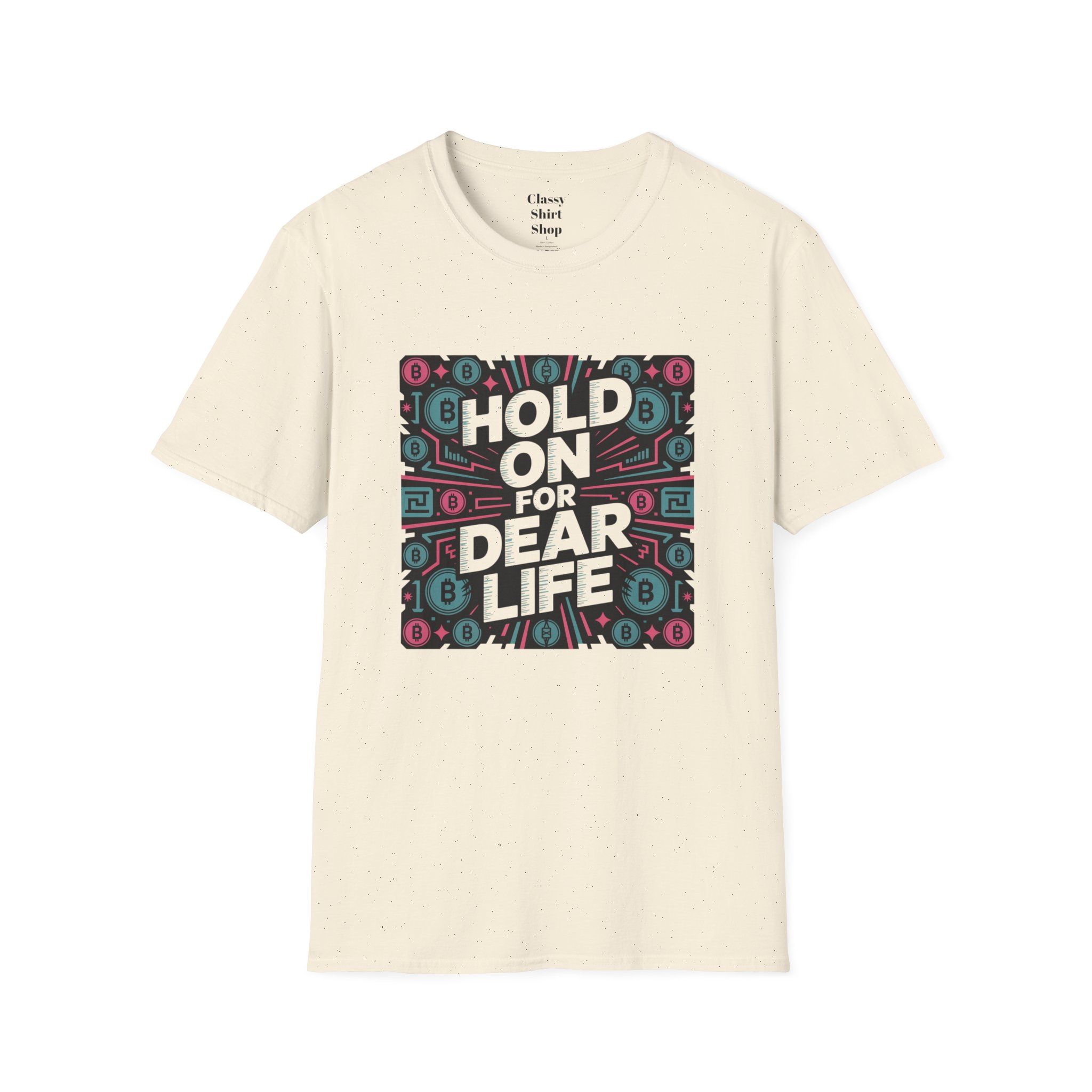 This lightweight crew-neck tee carries a bold, retro-inspired graphic that reads “HOLD ON FOR DEAR LIFE” framed by cassette, knob and audio-motif artwork. The design feels like a soundtrack frozen mid-verse — energetic, slightly nostalgic, and built for people who love loud moments and laugh-out-loud slogans. Wear it on long drives, weekend shows, or while tinkering with your rig; the soft ring-spun cotton sits easy against the skin while the print adds a confident, playful edge. It’s a simple canvas that lets the art and attitude do the talking.