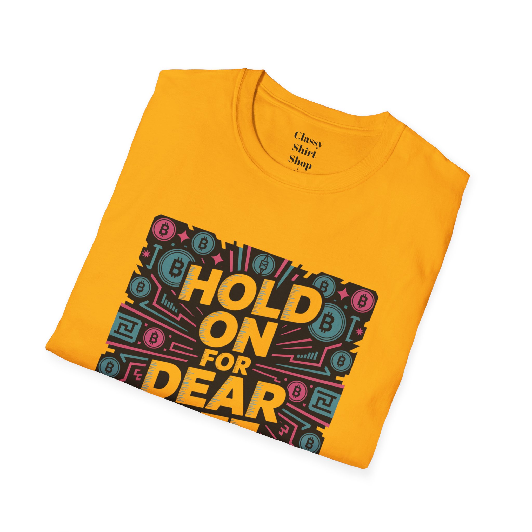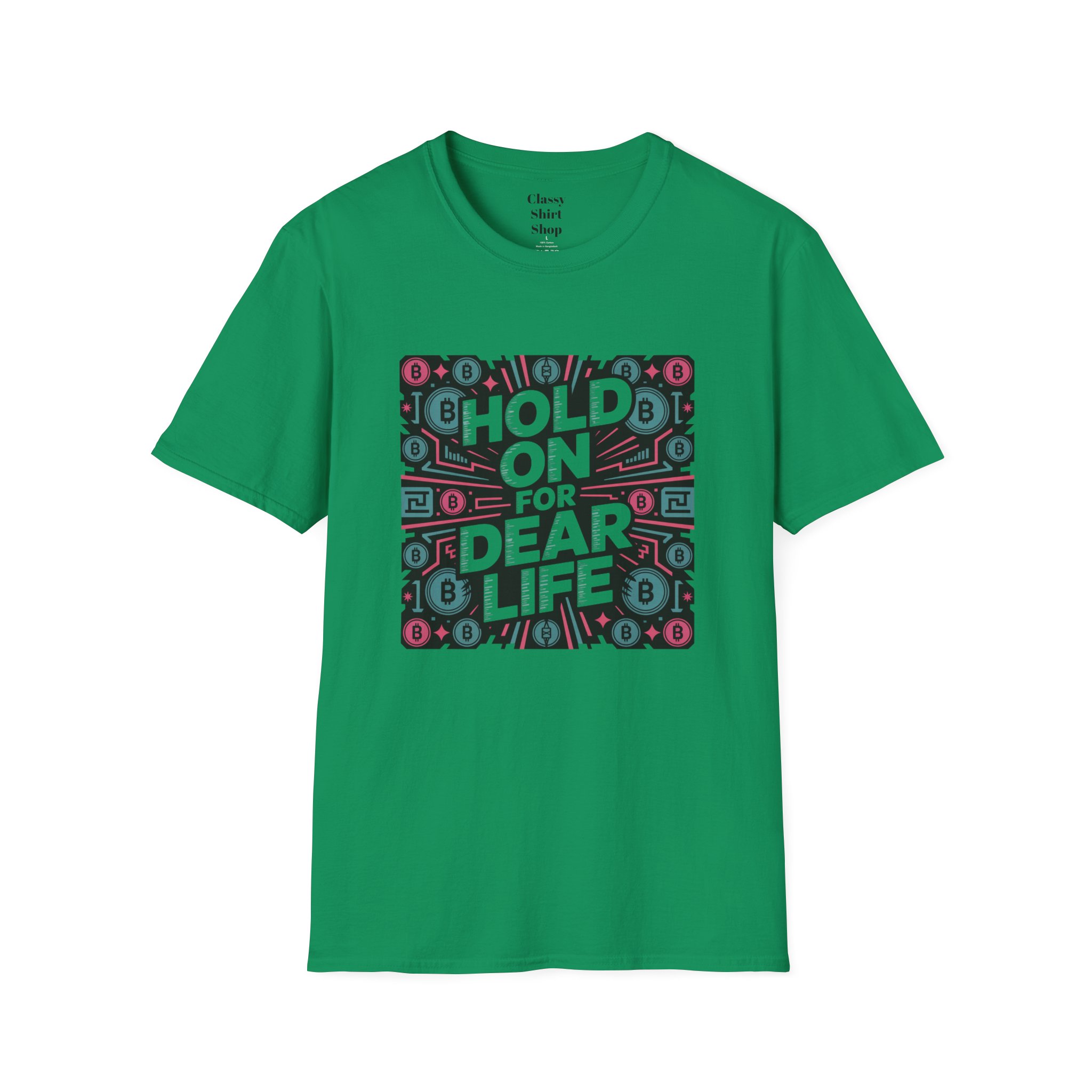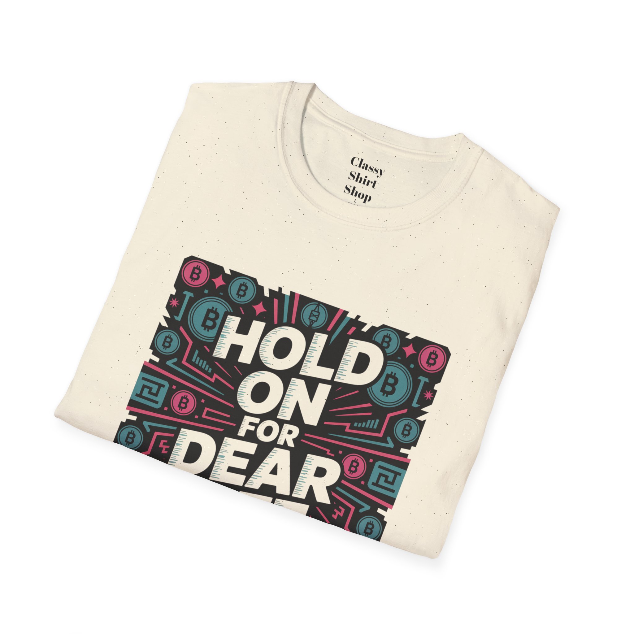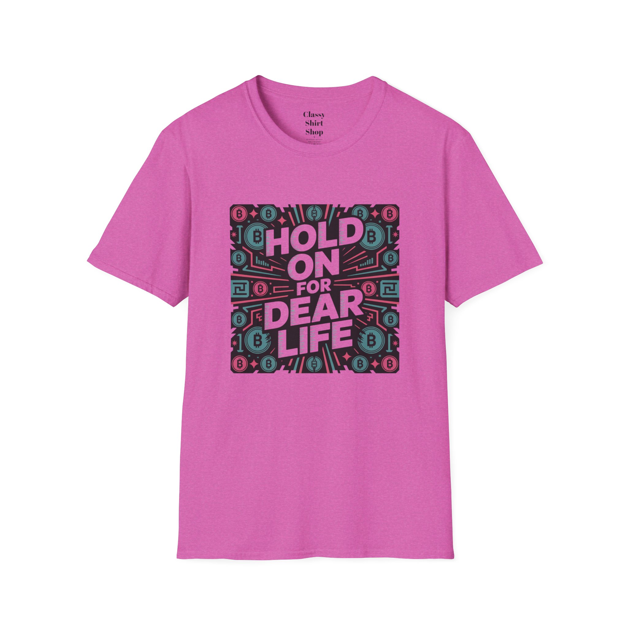 This lightweight crew-neck tee carries a bold, retro-inspired graphic that reads “HOLD ON FOR DEAR LIFE” framed by cassette, knob and audio-motif artwork. The design feels like a soundtrack frozen mid-verse — energetic, slightly nostalgic, and built for people who love loud moments and laugh-out-loud slogans. Wear it on long drives, weekend shows, or while tinkering with your rig; the soft ring-spun cotton sits easy against the skin while the print adds a confident, playful edge. It’s a simple canvas that lets the art and attitude do the talking.