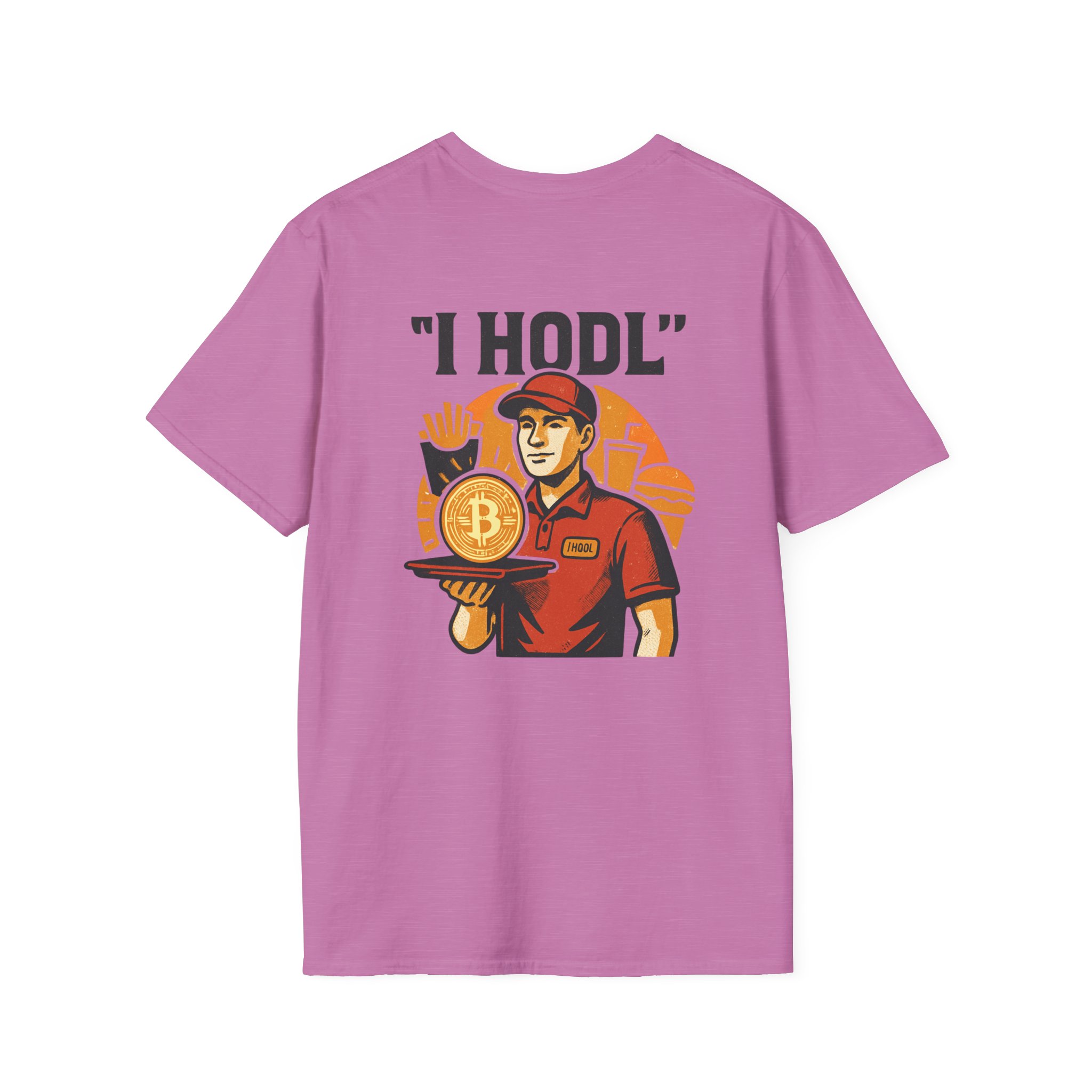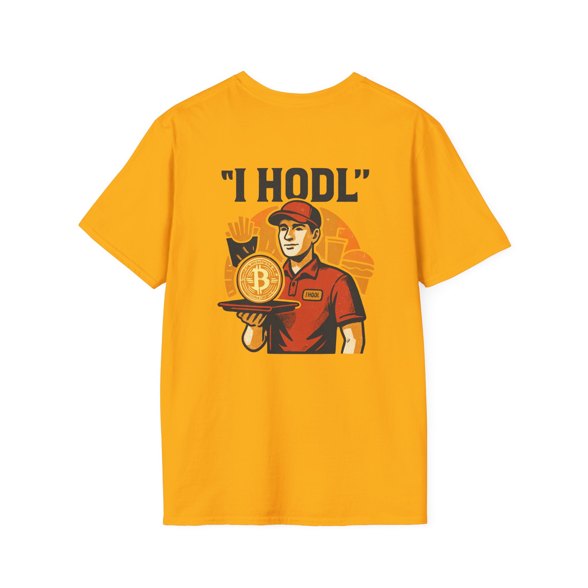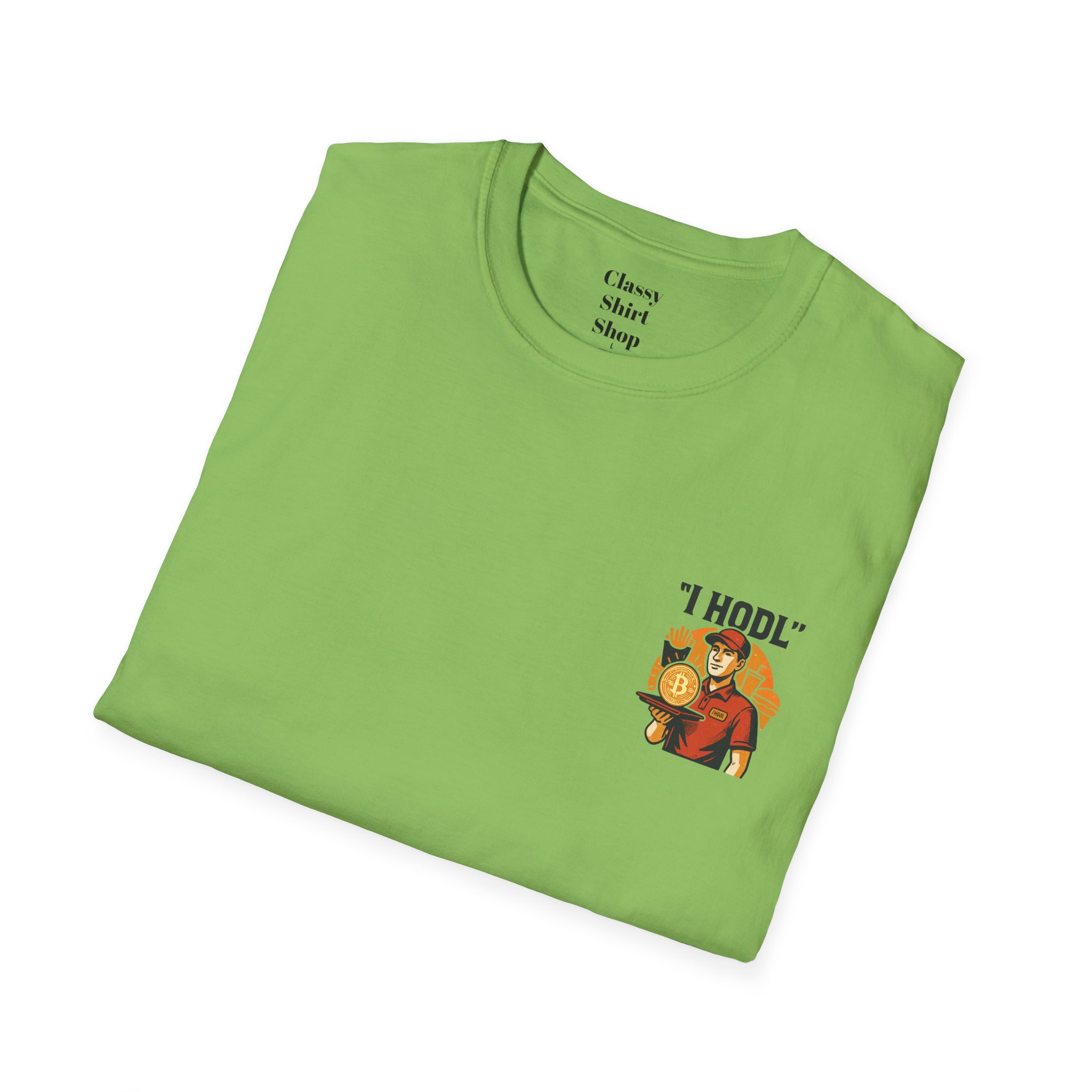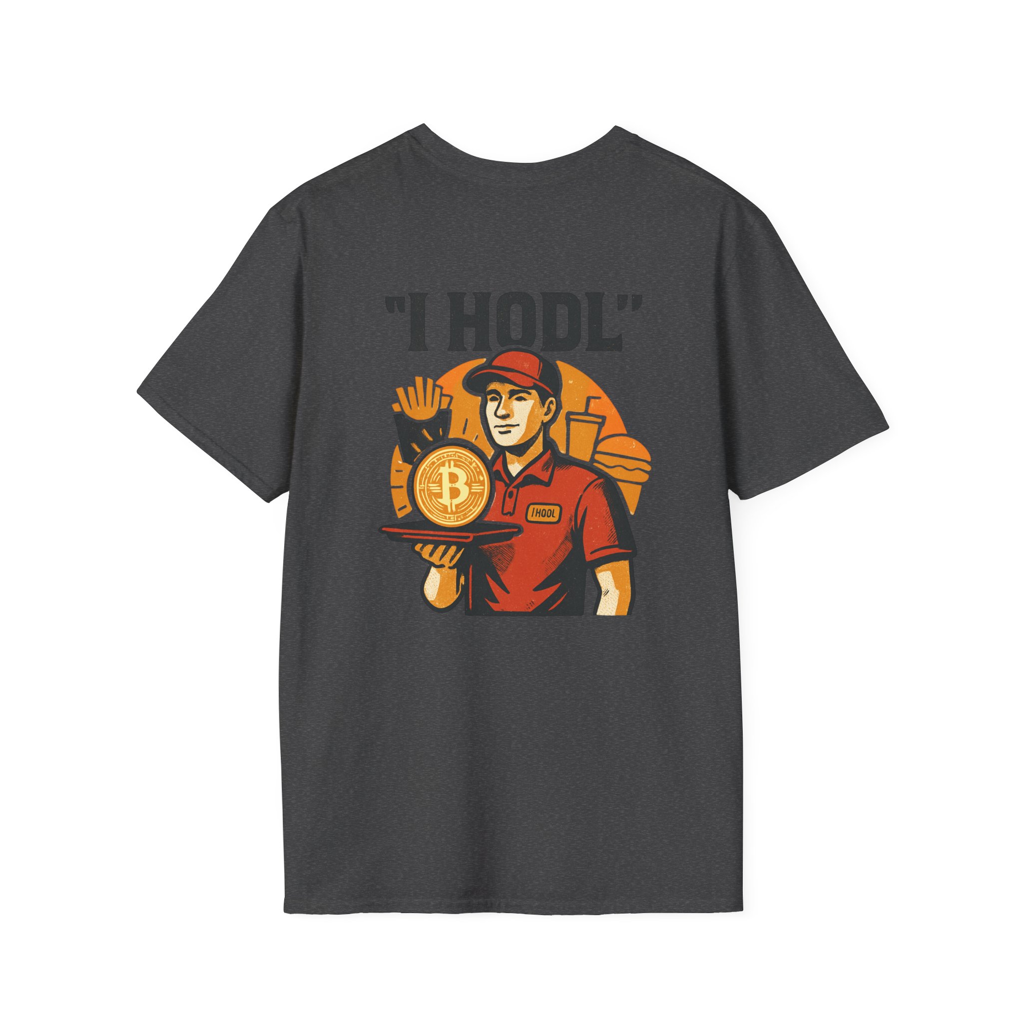 Lightweight, soft, and built for everyday wear — this tee carries a bold crypto attitude with a vintage diner-style illustration and the cheeky rallying cry “I HODL.” The design places a small chest graphic for subtlety and a larger, full-back illustration that turns heads when you walk away. Breathable ring-spun cotton feels smooth against skin and keeps prints crisp. Wear it layered under a jacket during meetups, or solo at a casual coin‑chat night — it’s meant for people who keep calm through market noise and want clothing that speaks their mindset without shouting. The finish is clean: a tear-away label, reinforced shoulders, and a collar that keeps its shape after repeated washes. Thoughtful construction and ethically sourced cotton mean this shirt looks good and aligns with mindful production values.