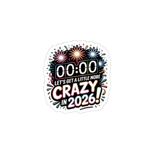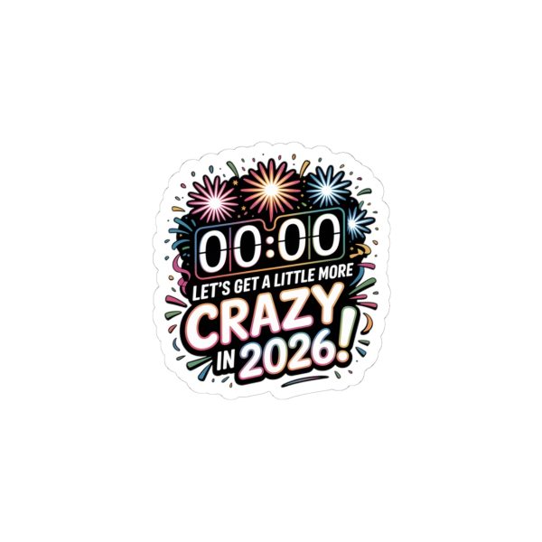 A playful, text-led kiss-cut sticker that captures the New Year Countdown mood with wry optimism. Bold sans-serif numbers read like a midnight clock while colorful fireworks and confetti frames the cheeky line about getting “a little more crazy in 2026,” blending humor and forward-looking energy for seasonal planners, party-goers, and goal-minded shoppers. The compact glossy design fits modern, restrained palettes while leaning into the trend’s short, witty statements and manifesto-style New Year motivation language.
