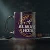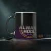Start your morning with a little surprise. This ceramic heat-reactive mug hides a bright photo beneath a dark outer coating — pour in a hot drink and watch the design bloom into vivid colors. The black exterior and white interior give it a modern, graphic feel while the comfortable C-shaped handle keeps your grip steady during slow mornings, late-night gaming sessions, or studio shifts. It’s made to take everyday use: microwave-safe, crisp printing, and a sturdy 11 oz size that fits most cupboards and hands. Use it on launch days, streamed sessions, or cozy work-from-home mornings to add a small, playful ritual to the day.