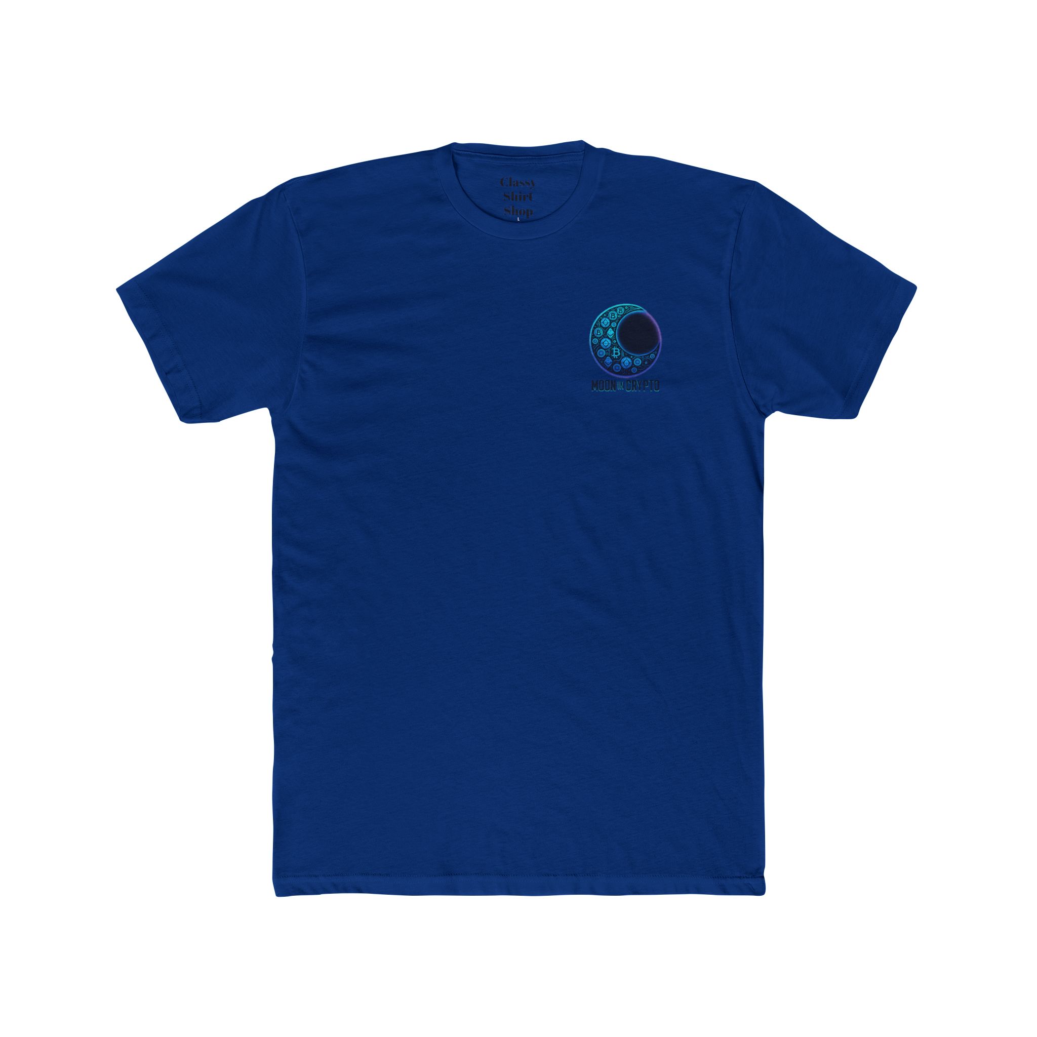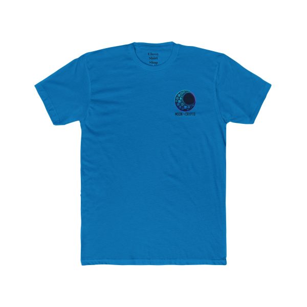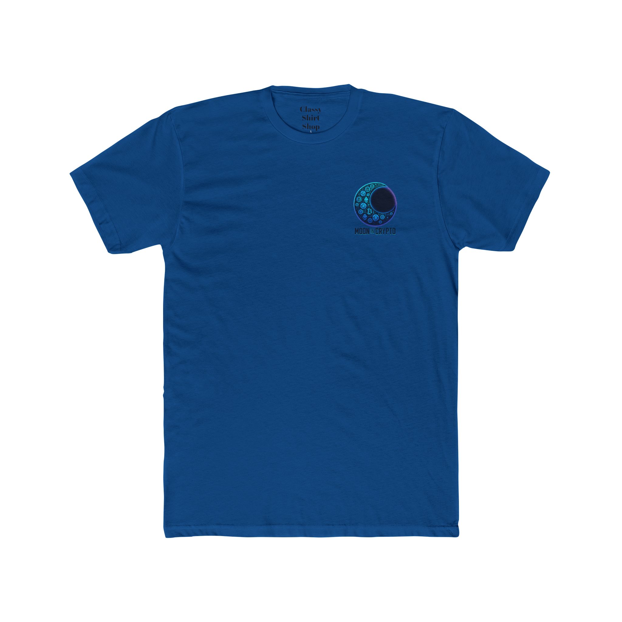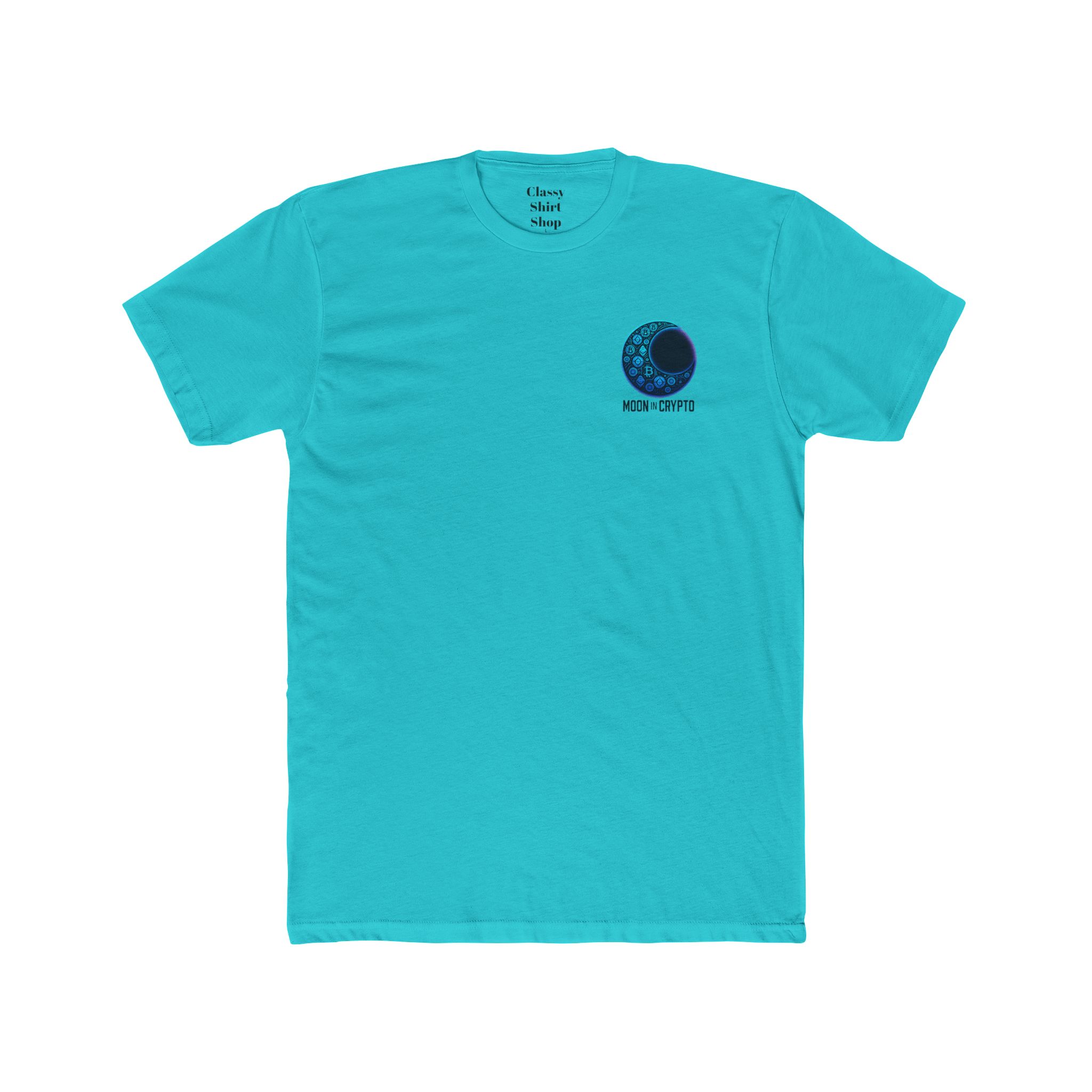 Soft, lightweight cotton with a clean crew neckline carries a bold, space‑themed crypto print that feels like a nod to late‑night market watching and long bets on the next big surge. The front chest shows a small emblem while the back displays a luminous moon composed of crypto icons and the phrase “MOON IN CRYPTO.” Wear it to chat strategy with fellow traders, stream market updates, or simply show your quiet confidence in blockchain futures. The fit is classic and easy to layer — pair it with hoodies, denim, or a blazer when you want the look to lean smarter. Subtle construction details like ribbed collar, shoulder tape, and side seams keep the tee looking sharp after many wears and washes.