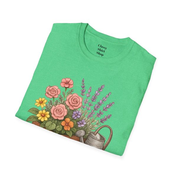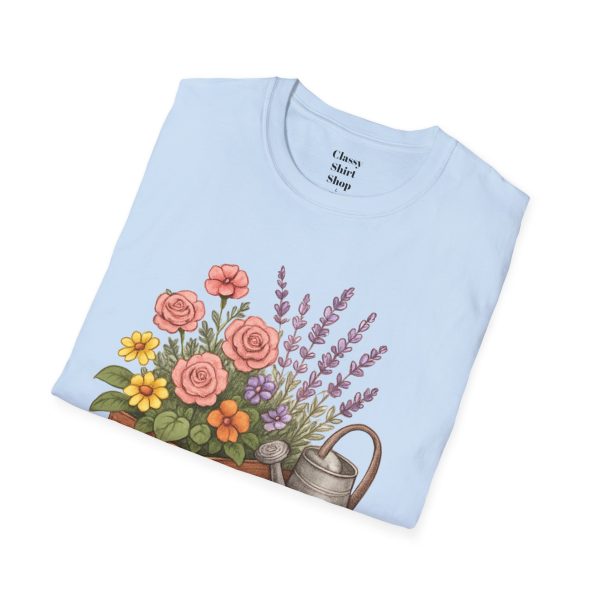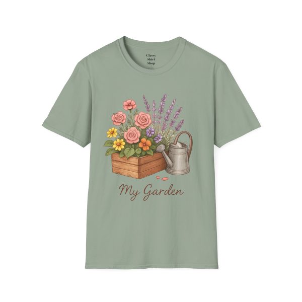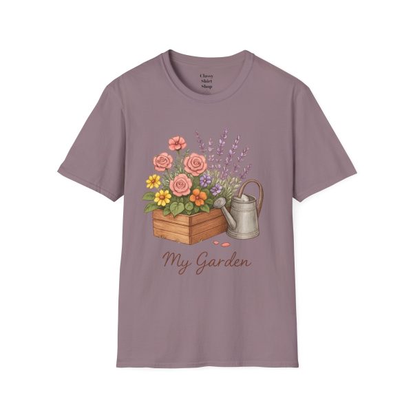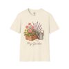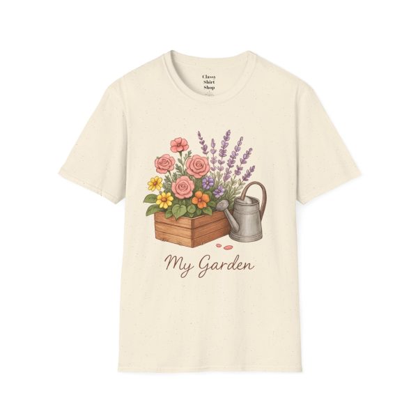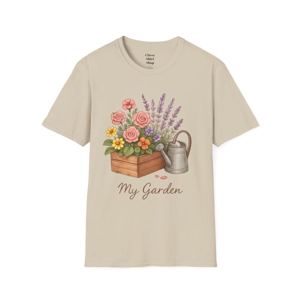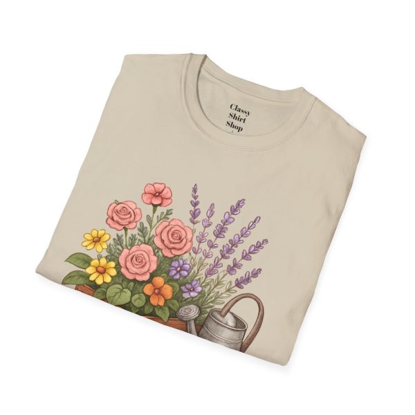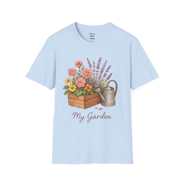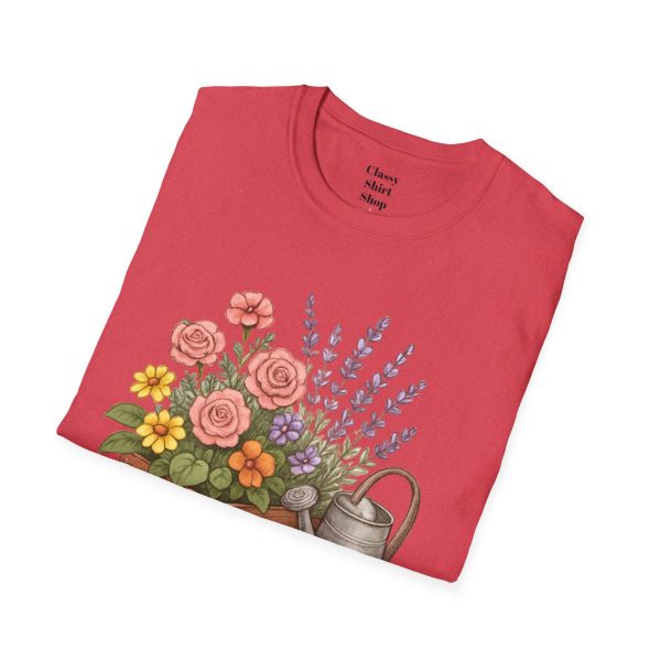Soft, breathable, and quietly charming — this lightweight tee carries a hand-tended garden right on your chest. Watering can, wooden planter, roses and lavender are rendered in warm, painterly tones that feel like a sunny morning spent potting herbs. The fit is classic and comfortable, the fabric smooth to the touch, and the muted design blends easily with jeans, overalls, or a favorite cardigan. Wear it when you’re pruning, visiting farmer’s markets, or simply savoring a cup of tea on the porch — it settles into the slower, green moments of your day and keeps them close.