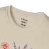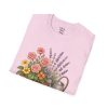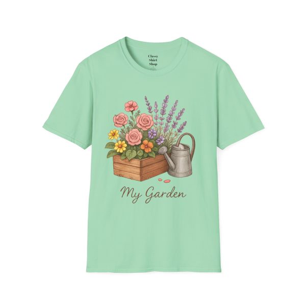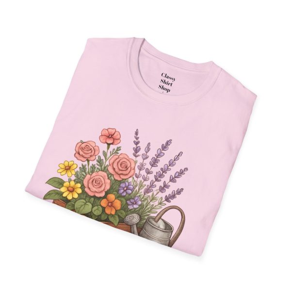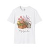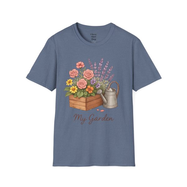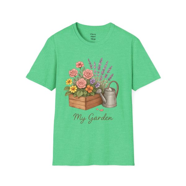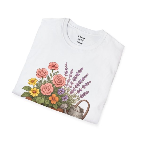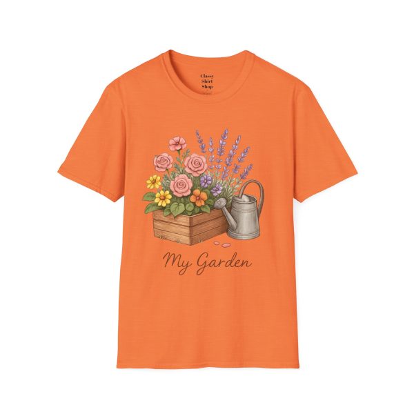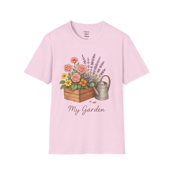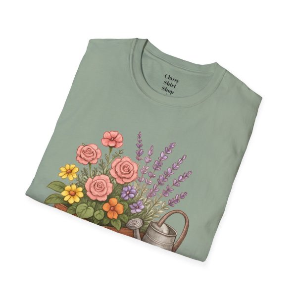 Soft, breathable, and quietly charming — this lightweight tee carries a hand-tended garden right on your chest. Watering can, wooden planter, roses and lavender are rendered in warm, painterly tones that feel like a sunny morning spent potting herbs. The fit is classic and comfortable, the fabric smooth to the touch, and the muted design blends easily with jeans, overalls, or a favorite cardigan. Wear it when you’re pruning, visiting farmer’s markets, or simply savoring a cup of tea on the porch — it settles into the slower, green moments of your day and keeps them close.