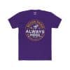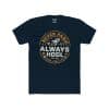 The fabric drapes easily and breathes well in warmer months while layering smoothly under a jacket when it cools. The ribbed collar and shoulder tape keep the shape steady after repeated wears. Stitching along the sides gives the tee structure so the emblem stays centered and sharp. This shirt is for the steady, the patient, the ones who smile at volatility and stay for the journey.